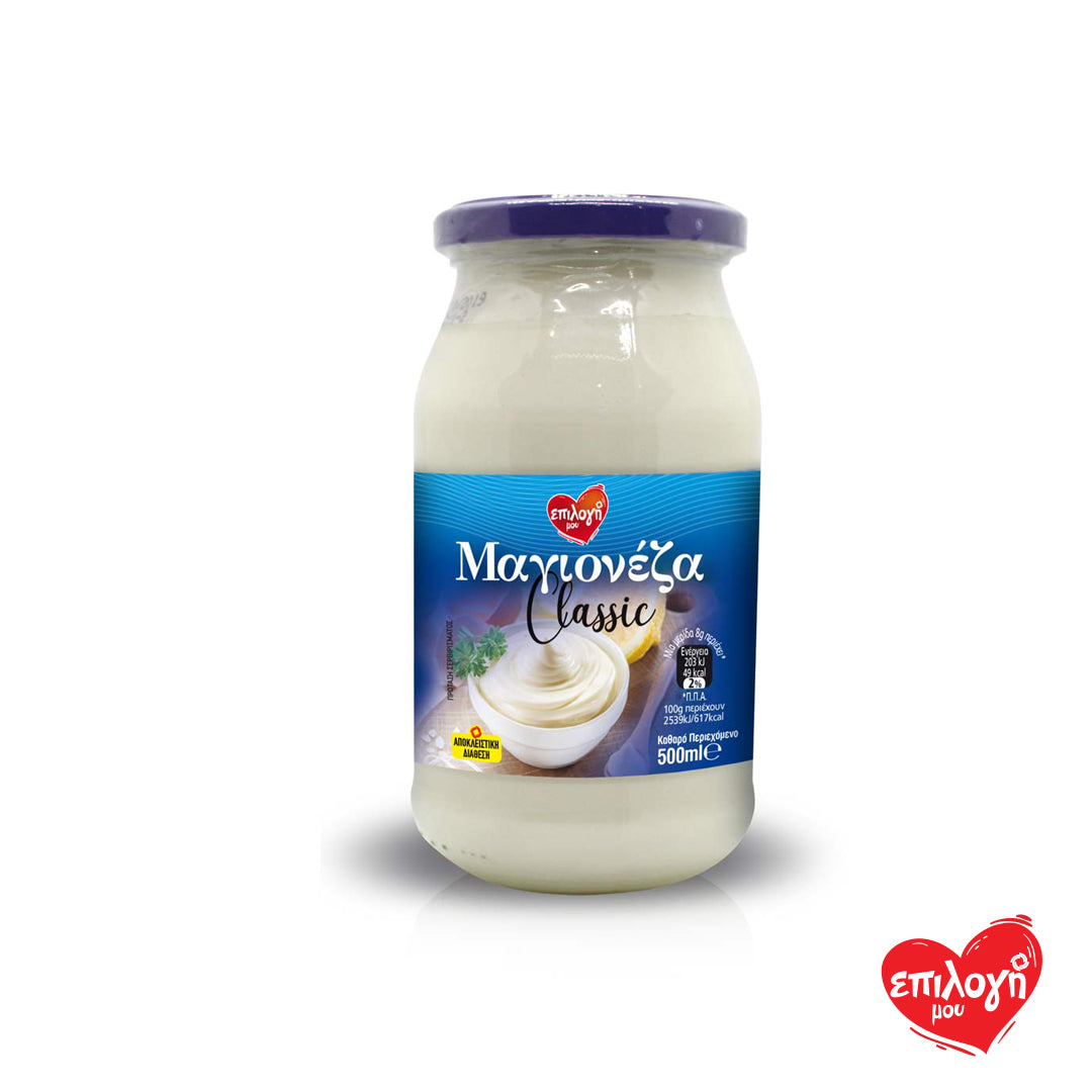 ΠεριγραφήΜαγιονέζα Classic ΕΠΙΛΟΓΗ ΜΟΥ. Υψηλή μαγειρική και δημιουργία χρησιμοποιώντας τα προϊόντα της σειράς μας «ΕΠΙΛΟΓΗ ΜΟΥ». Προϊόντα που βάζουν όμορφες, δημιουργικές αλλά απαραίτητες πινελιές στα πιάτα μας αποτελώντας τον σύμμαχο κάθε επίδοξου μάγειρα.