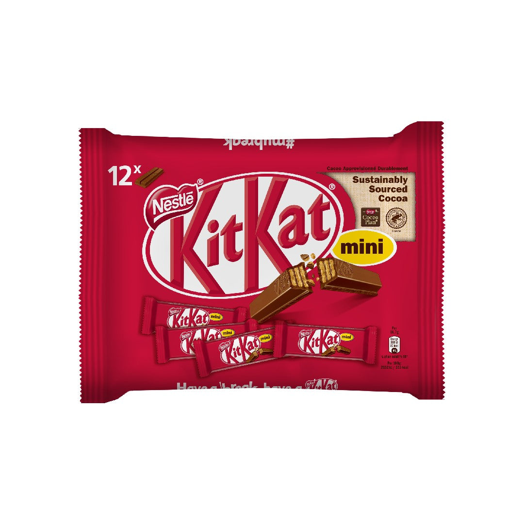 ΠεριγραφήΚάνε ένα διάλειμμα, κάνε ένα ΚIT KAT®… με την τέλεια αναλογία σοκολάτας γάλακτος και γκοφρέτας! Ελέγξτε τις μερίδες σας, μοραστείτε τα με φίλους και την οικογένεια, σε κάθε όμως περίπτωση τα ΚIT KAT®ΜΙΝΙ θα ικανοποιήσουν τη λιγούρα σας για κάτι γλυκό.