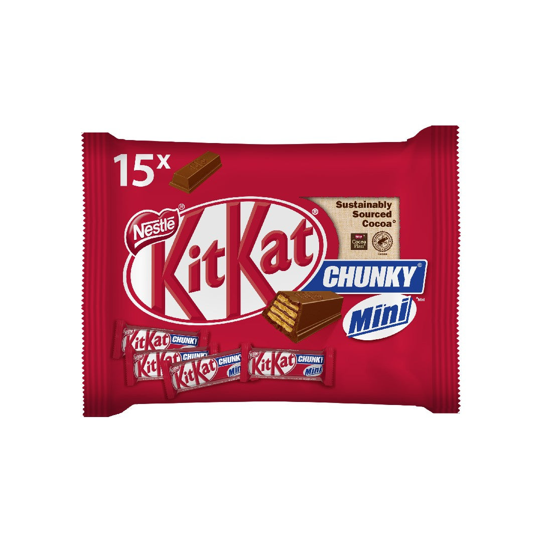 ΠεριγραφήΚάνε ένα διάλειμμα, κάνε ένα ΚIT KAT®… με την τέλεια αναλογία σοκολάτας γάλακτος και γκοφρέτας! Το ΚIT KAT® CHUNKY έχει ακόμα πιο πλούσια σοκολάτα από ένα απλό ΚIT KAT® για αυτούς που αναζητούν πιο σοκολατένιες και ελάφριες απολαύσεις.ΚIT KAT® CHUNKY μίνι γκοφρετάκια επικαλυμμένα με σοκολάτα γάλακτος.